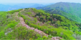 정상부 인근 철쭉 군락지에는 수많은 철쭉이 군데군데가 아니라 넓게 펼쳐져 있어 핑크빛 물결처럼 보입니다.