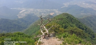 등산로 곳곳에 펼쳐진 기암괴석들이 볼거리를 제공합니다. 특히 정상 부근의 바위들은 전망대 역할을 하며 탁 트인 조망을 선사합니다.