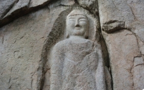 높이 약 5m의 거대한 자연 암벽에 새겨진 불상으로, 고려시대에 조성된 것으로 추정됩니다. 두 손을 모아 가슴 앞에서 합장한 모습이며, 온화한 얼굴 표정과 입체감 있는 조각이 돋보입니다. 주변 경관과 어우러져 신비로운 분위기를 자아내며, 용봉산 등산 시 꼭 들러볼 만한 문화재입니다.